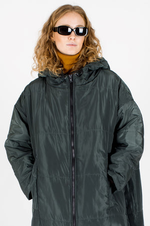 Heavy-duty YKK zippers and a spacious elasticated hood offer extra protection. Sized to layer over coats or jackets for added warmth.